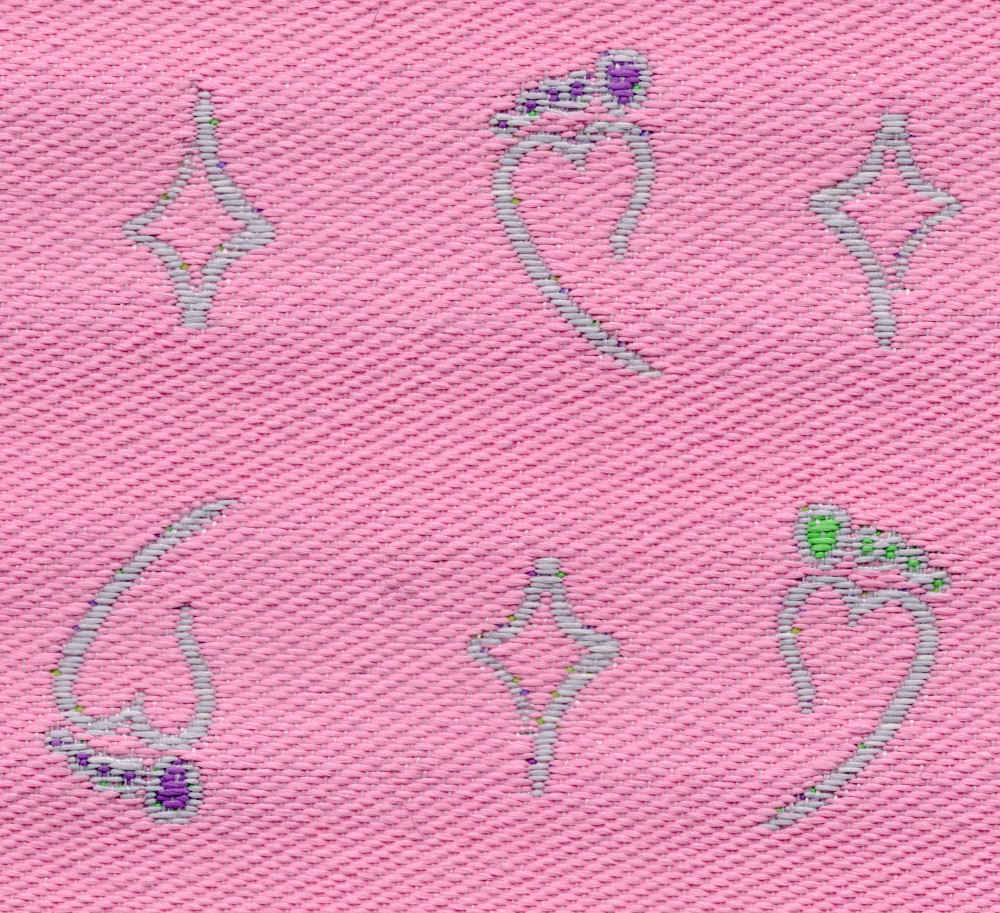 ですので、生地の上に盛り上がったように絵柄が表現されているものが多いと思いますが、ジャガード織はベースの生地と生地に描かれる模様を同時に織りながら作り、一枚の生地になります。